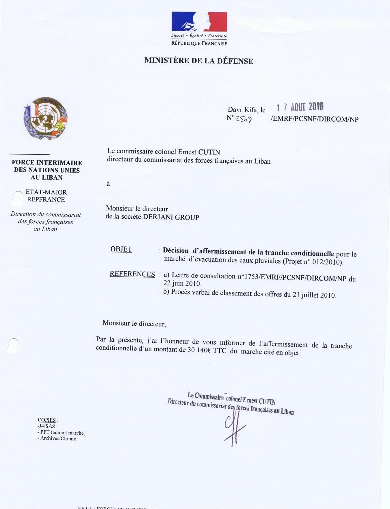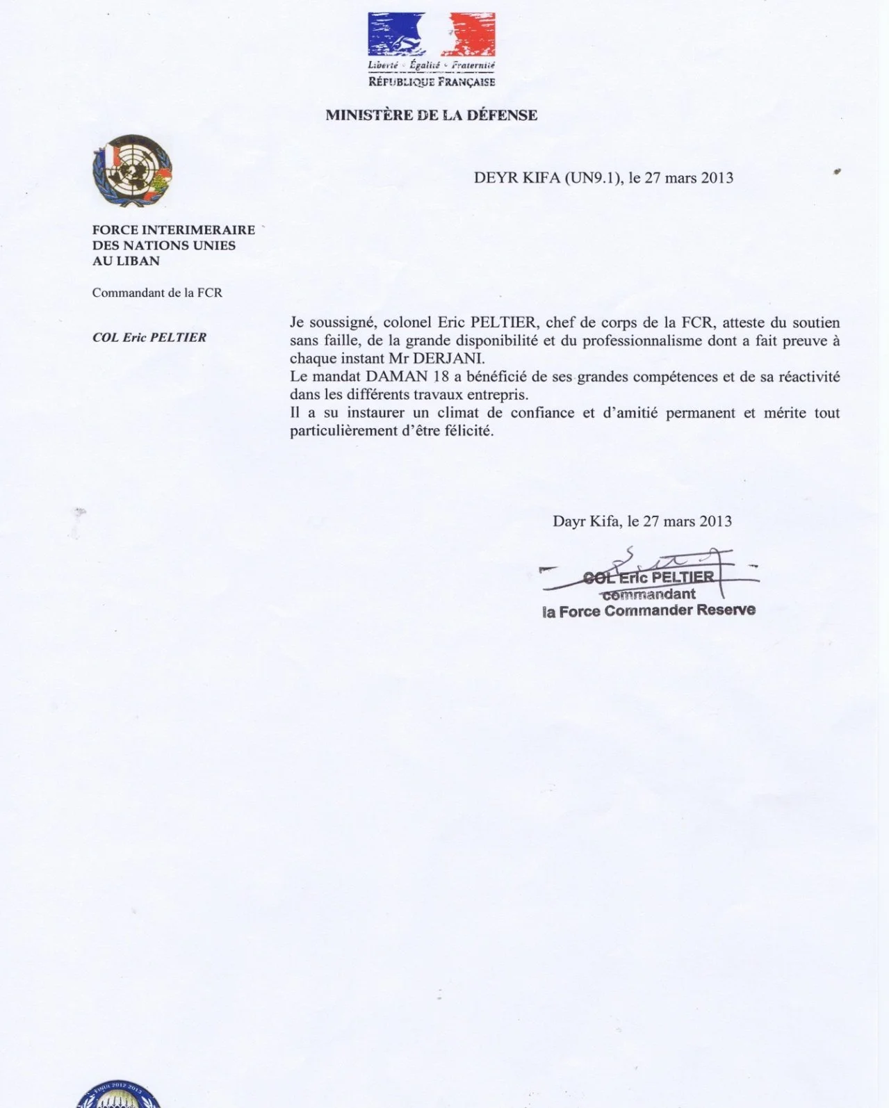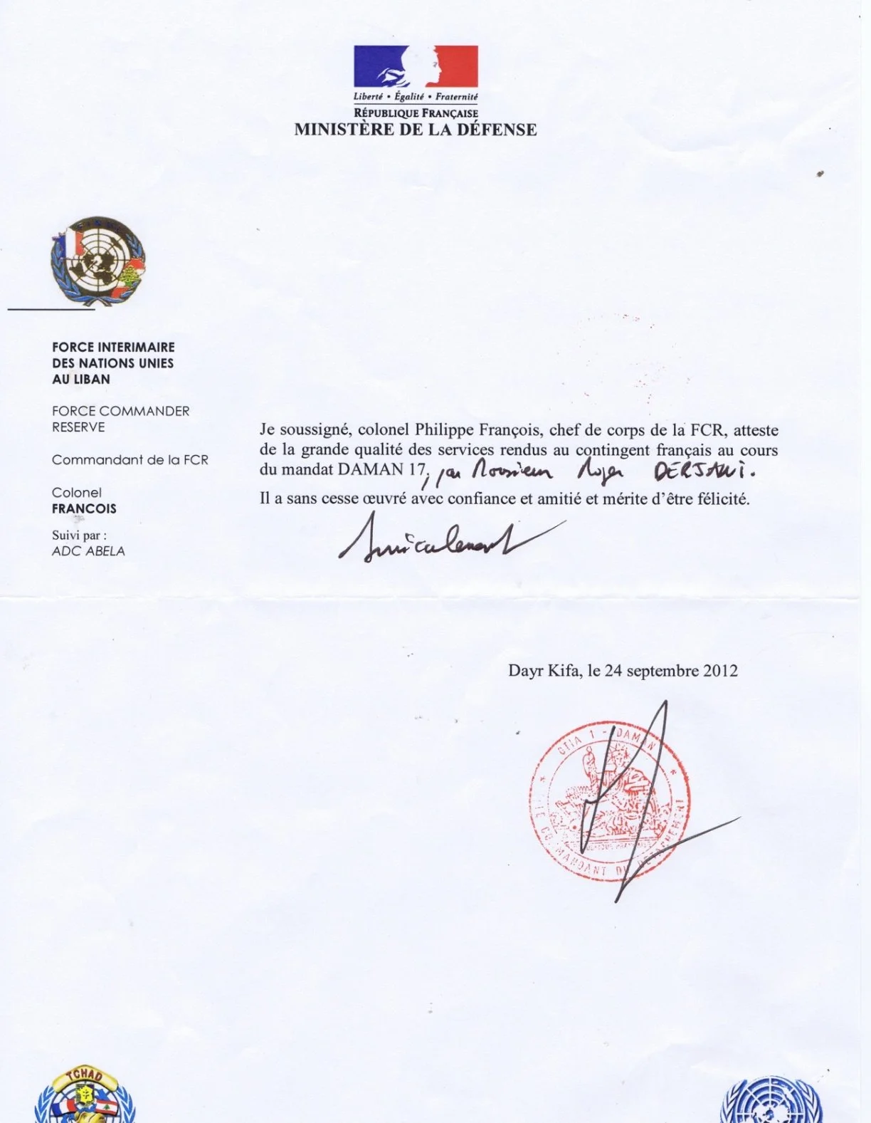 Administrative Controller | French Contingent"I attest to the unfailing support, great availability, and professionalism shown... The DAMAN 18 mandate benefited from your great skills and responsiveness."