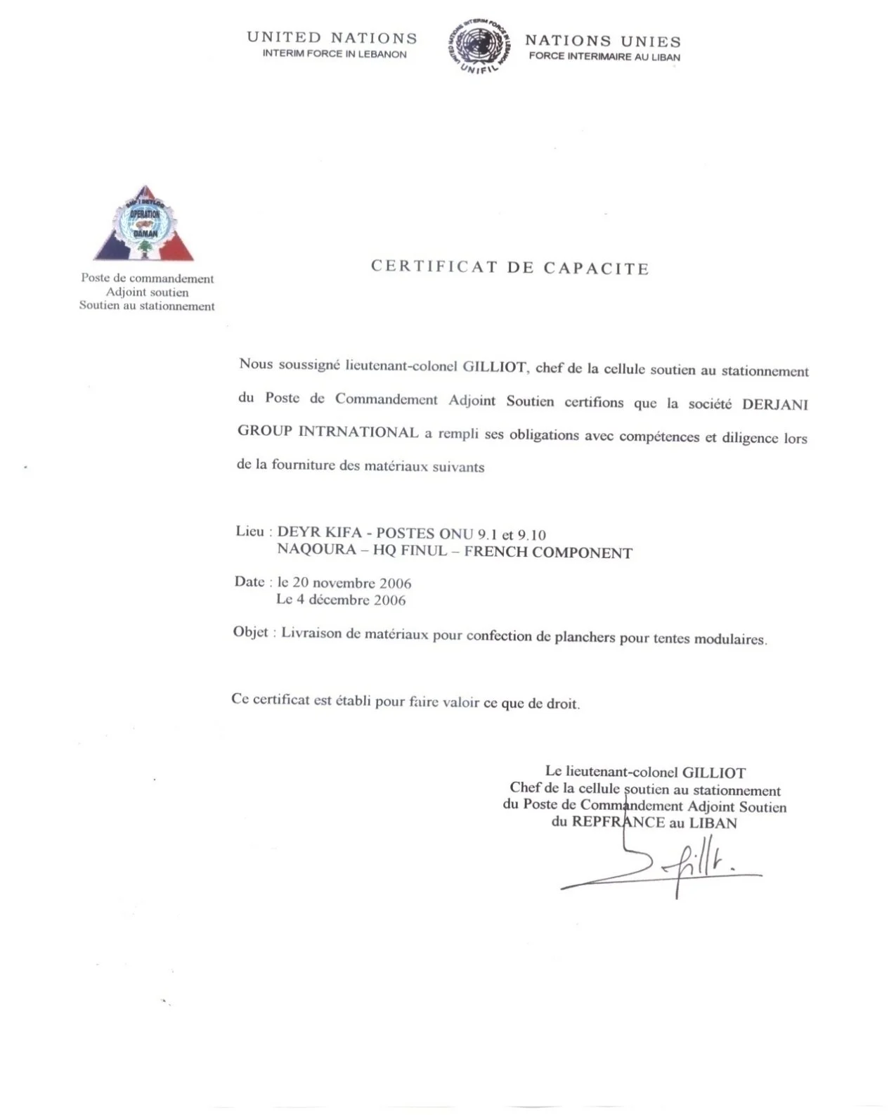 Our track record speaks for itself. From receiving an 'Excellent Plus' (5/5) quality rating from the US Marine Corps to earning commendations from the French and Italian armies, Derjani Group consistently exceeds expectations in the most demanding environments. Browse our certifications and client testimonials below.